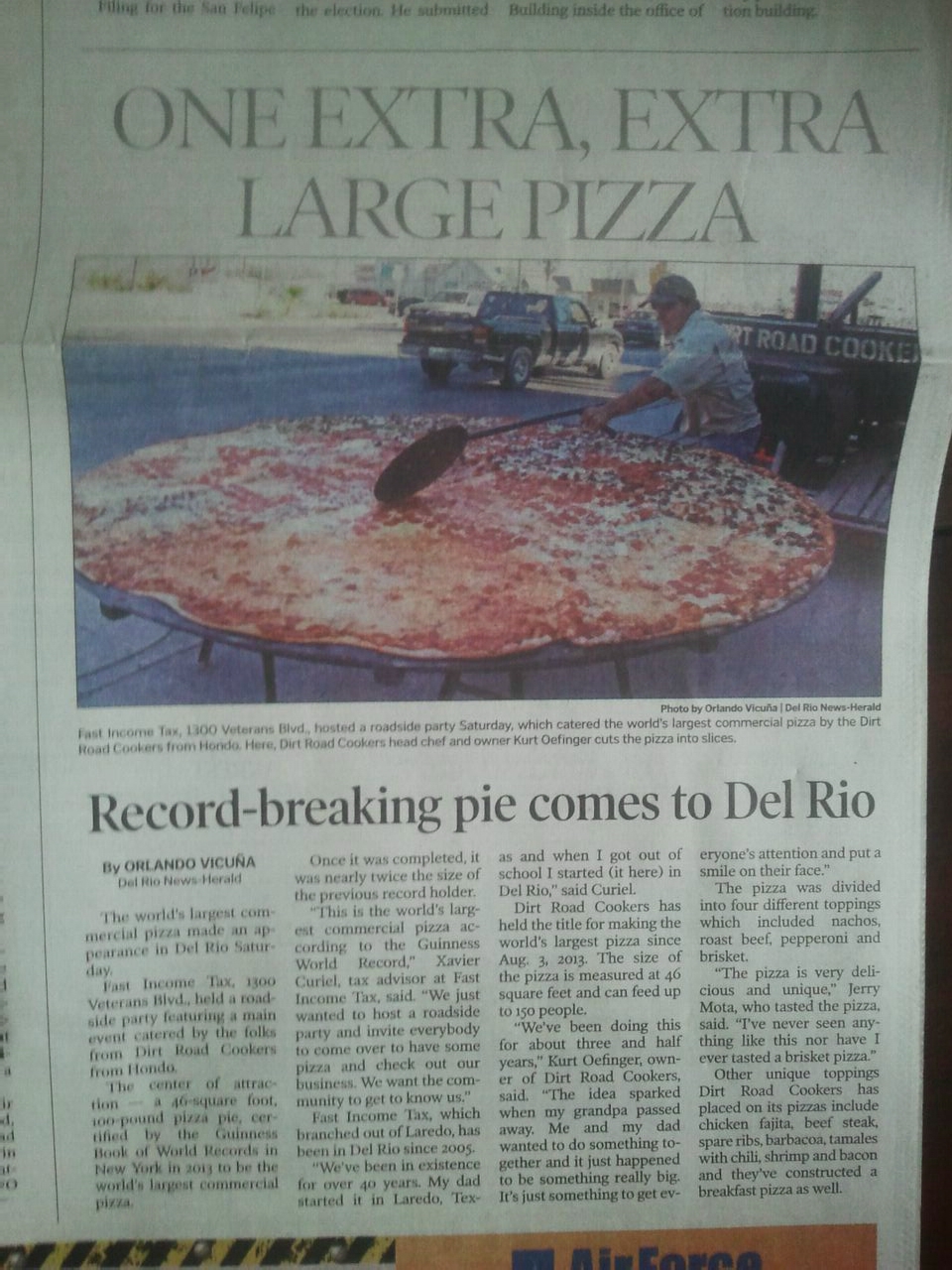 Largest Commercially Available Pizza: Texas