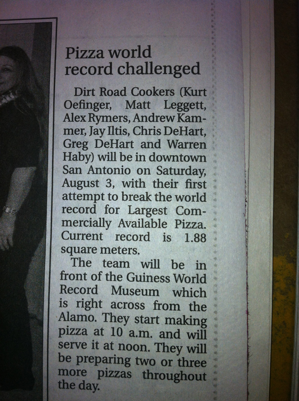 the World Record for the largest pizza.