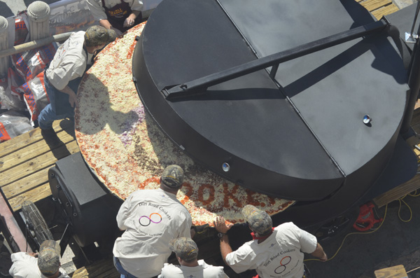 My team and I will attempt to finally get in the books as "largest commercially available pizza" we might make up to 4 pizzas but the one that counts comes off the pit at noon.